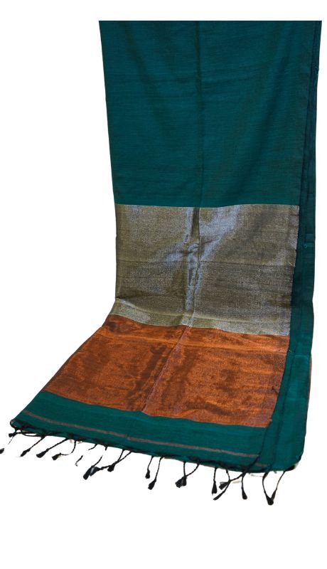 Introducing our exquisite khadi cotton saree, a perfect blend of elegance and modern flair. This stunning saree features a deep brown body, creating a warm and inviting look. The exquisite silver and copper borders add a striking contrast, enhancing the overall design with a touch of sophistication.