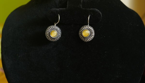 Small Pale Yellow Coloured Pair Of Oxidised Round Earring.