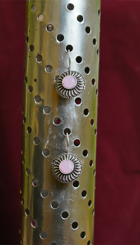 Small Pink Coloured Pair Of Oxidised Round Earring.